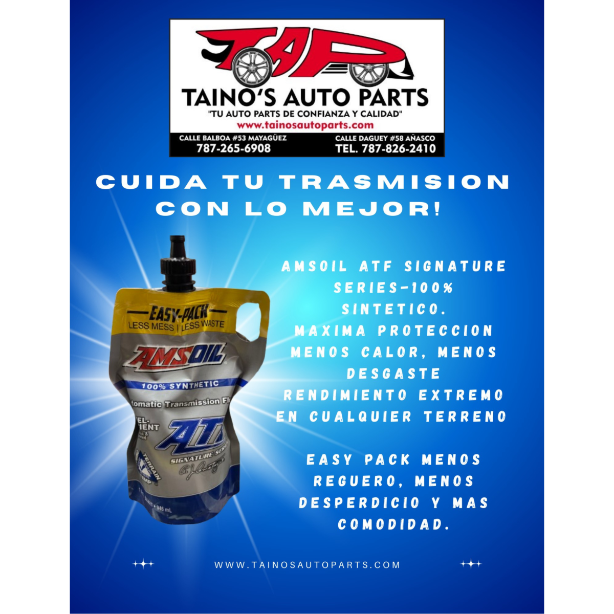 En Taino's Auto Parts, estamos comprometidos a brindar un servicio al cliente excepcional. Nuestro equipo está disponible las 8 horas del día, los 6 días de la semana para responder sus preguntas, brindarle asesoramiento experto y garantizar que tenga una experiencia de compra fluida y sin estrés.